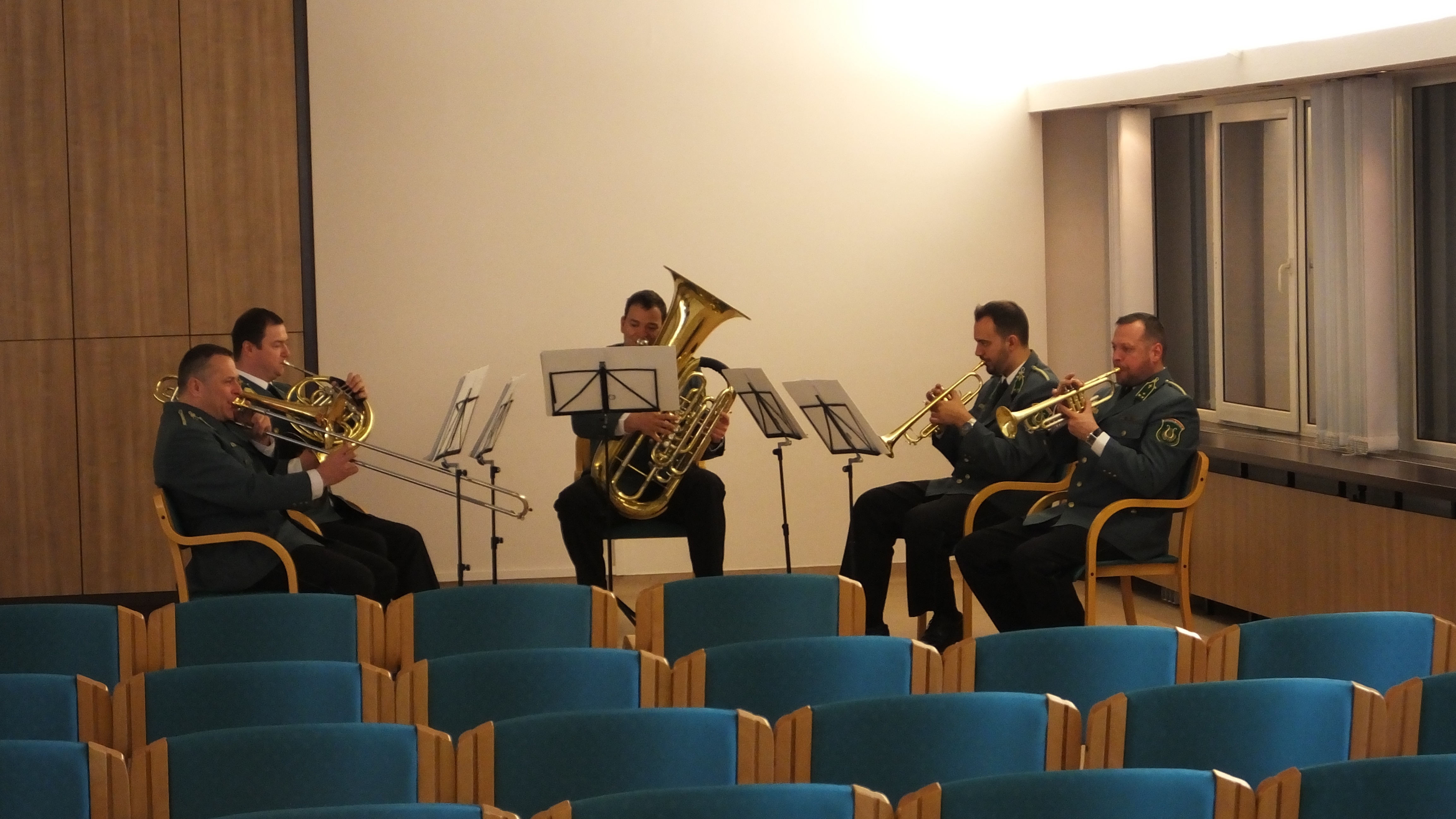 A pontosan érkező tagokat a már jól megszokott kávé és pogácsa mellet a Pénzügyőr Zenekar Rézfúvós Kvintettjének hangulatos zenéje fogadta, majd a közgyűlés a napirend szerint folytatódott.